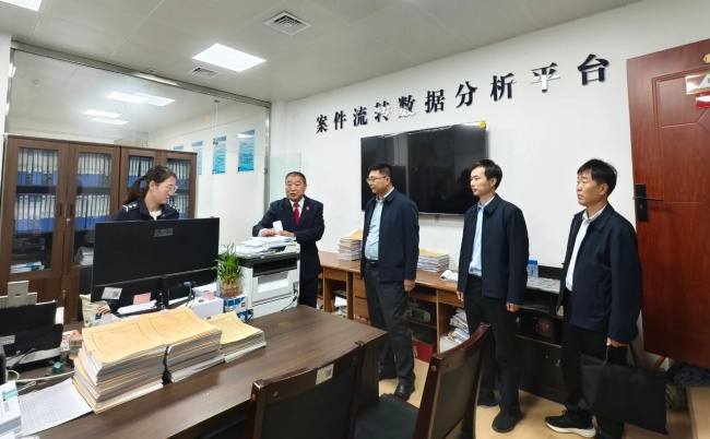 调研过程中,陈国辉一行实地查看了宝丰法院综合服务中心、执行指挥中心和案管中心,直观了解了法院工作开展情况,并与班子成员进行座谈。座谈会上,桓旭介绍了宝丰法院内设机构设置、人员编制、收结案情况及队伍建设等方面情况,详细汇报了审执质效、司法为民、从严治院工作取得的成绩及下一步打算,并对法院当前工作中存在的问题和困难进行汇报。陈国辉指出宝丰法院在服务发展、维护稳定、保障民生、促进公正等方面做了大量工作,取得了显著成绩,为全县经济社会高质量发展提供了有力的司法服务和保障。本次调研加深了对法院具体工作情况的了解,也为后续工作开展提供了丰富的实践样本。针对宝丰法院下一步工作,陈国辉提出四点意见。