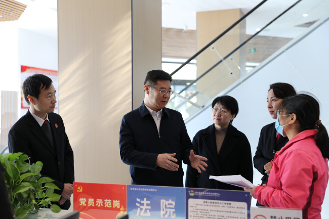史昶伟实地查看了宝丰县社会治安综合治理中心规范化建设情况,并现场听取了综治中心纠纷受理、多元分流、矛盾化解机制等运行成效。随后,史昶伟到宝丰法院诉讼服务中心、综合服务中心、执行指挥中心等部门,详细了解立案、诉讼服务、起诉状及答辩状示范文本推广应用、执行规范化等工作开展情况。